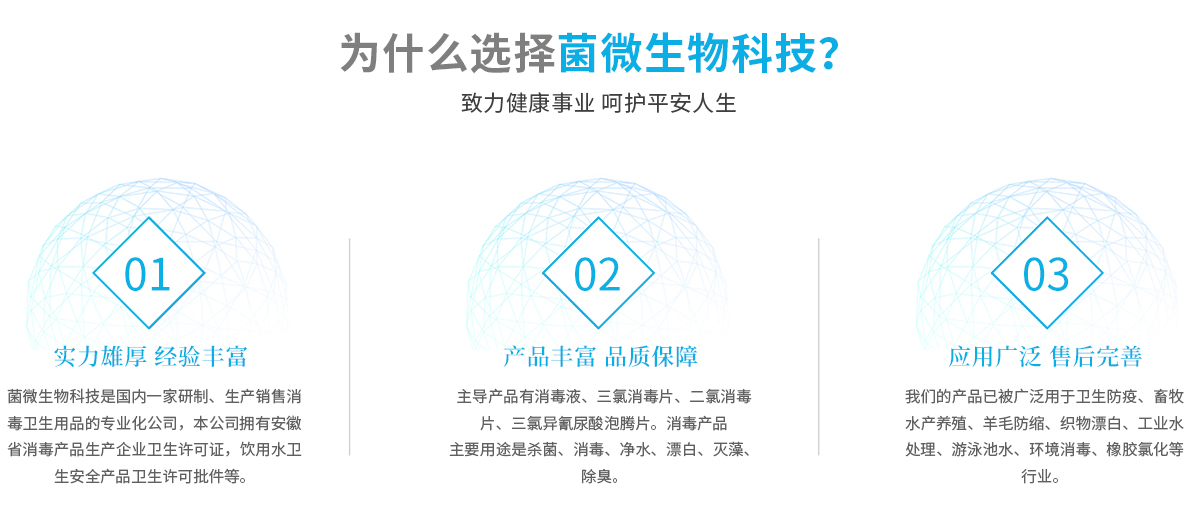 安徽菌微生物科技有限公司于2020年2月21日在池州市市場監督管理局注冊成立,公司地處池州市直屬園區江南產業集中科技孵化園。我公司是國內研制,生產銷售消毒衛生用品的專業化公司,公司專注氯代異氰尿酸消毒劑(片)、次氯酸鈉(84)消毒液的研發生產和醫用消毒研發建設項目,屬于高新技術產業孵化項目。本公司擁有安徽省消毒產品生產企業衛生許可證,飲用水衛生安全產品衛生許可批件等。 公司主要生產消毒系列產品。主...